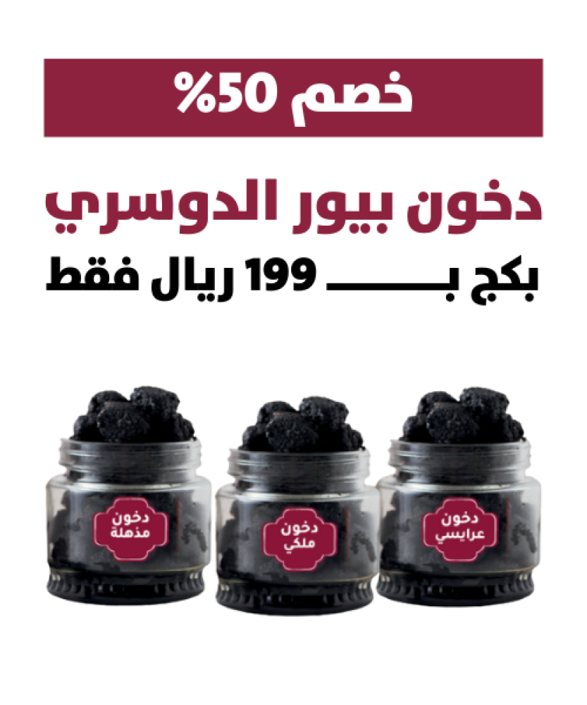 استمتع بأصالة العود والترف الشرقي مع دخون بيور من الدوسري. تتضمن هذه الباقة المميزة ثلاث علب من الدخون الفاخر، كل واحدة بوزن نصف كيلو، بنكهات متنوعة تشمل: